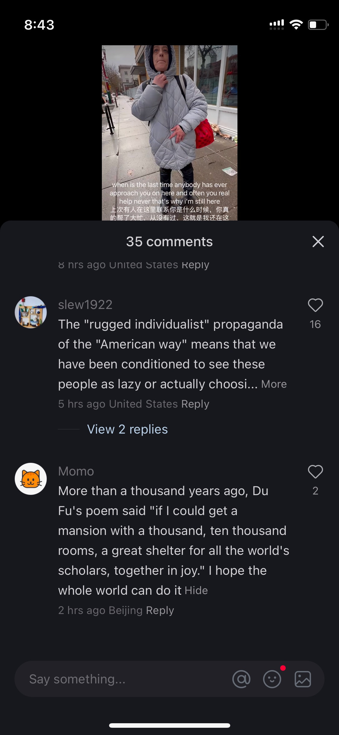 My political ideologies led me to question the propaganda we receive about the East. Even with some of my closest friends, I have found myself in heated arguments about what is actually going on in China. Our society is quick to push rhetoric about their human rights, their working conditions, etc. This isn’t to say that there likely are negative things that happen in China. But, the same negative things happen here, and one could argue that it happens on a larger scale. Surely, it is difficult for us to truly know, because our media from both sides are censored. All of this to say, despite Red Note also being censored by the Chinese government, real people from all over the globe are connecting on Red Note. They’re talking about everything, their cultures, their tax systems, the cost of their lifestyles, how to improve health by drinking warm drinks, and sharing memes of our cats…together. Red Note is breaking down barriers and for the first time, we are unlearning the stereotypes that we’ve been fed about other cultures, in real-time. As someone with the political ideologies I have, it is truly astonishing. I’ve been enjoying commenting on the litany of posts discussing this newfound connection of regular folks from across the globe, “The People United can never be Defeated.”