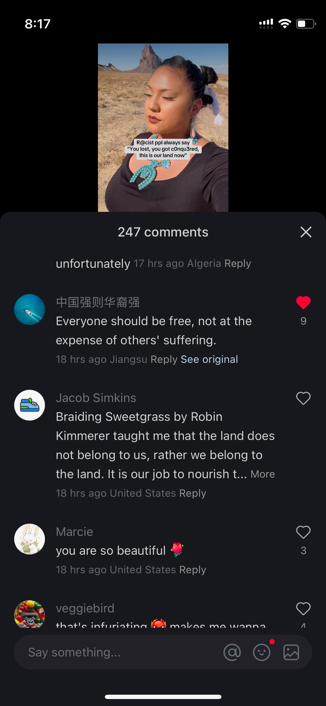 This post and the comments made me cry. The stories and dialogue surrounding the indigenous story of America and the East are deeply interconnected. We are interacting despite the propaganda. We are recognizing our deepest truths together. We are the same. We are united. This is a people’s revolution.