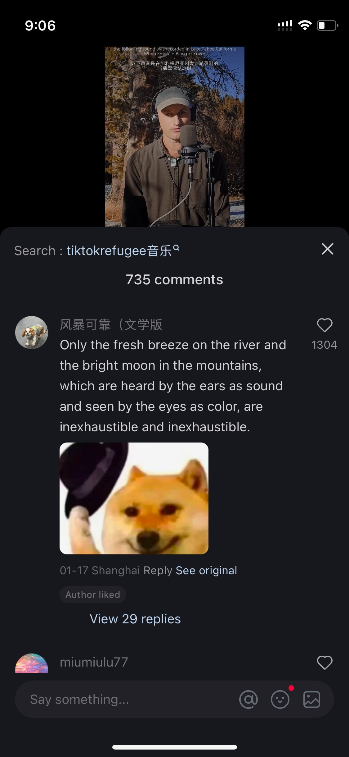 This was a post of an American user sharing the audio of what Lake Tahoe sounds like when the lake becomes frozen. The poem by this user in Shanghai was unexpectedly moving. I call it a poem, but it could also simply be how the language sounds to us when translated. Many non-English languages somehow sound so much more poetic than English…